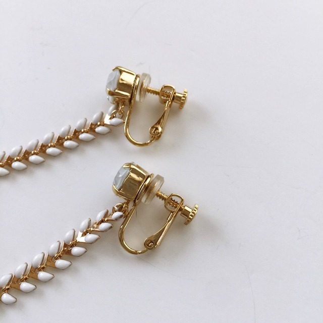 葉っぱのようなチェーンとミニタッセルのピアス(イヤリング)。※イヤリングをご希望の方は通信欄にご入力ください。