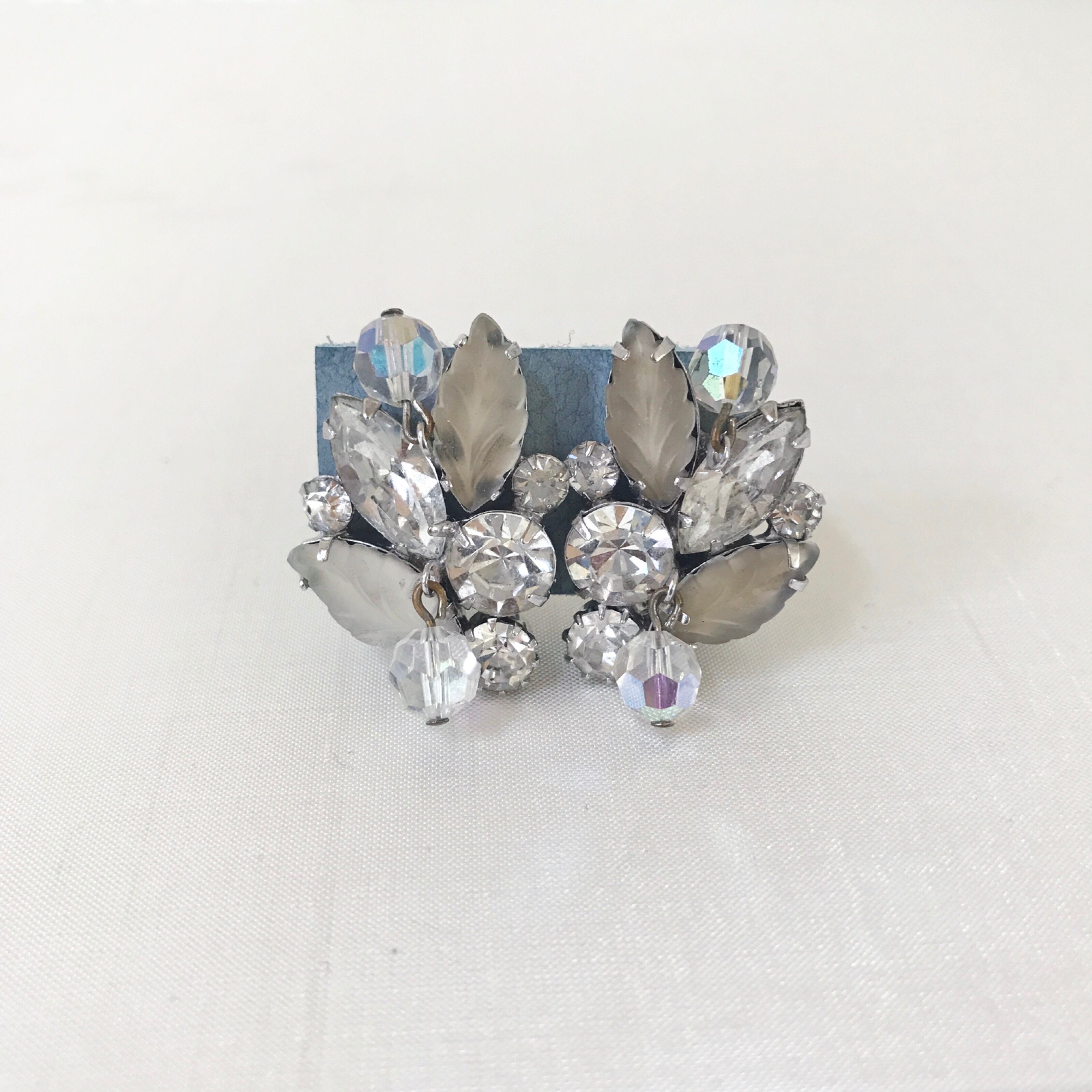 1950〜60年代にChristian Dior/クリスチャン・ディオールのジュエリーのデザインも手がけていたニューヨークのブランド"Kramer"のイヤリング。リーフの形のガラスストーンや揺れるビーズなどヴィンテージらしいこだわりのつまったデザインです♡. サイズ: 3.0センチ× 2.0センチ